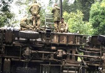 The two Rheinmetall MAN military vehicles had been travelling in convoy on their way to help the SES with a fallen tree.