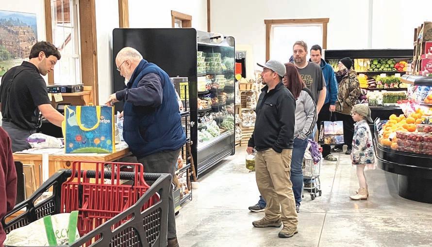 Photo by Teresa Winchester Shoppers at Weaver’s Farm Market in Morris stand in line for checkout on Saturday, April 13.