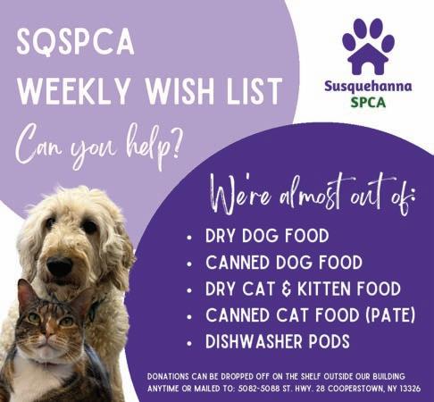 12:30-8 p.m. “Robert B. Schlather Susquehanna SPCA Golf Tournament.” Registration required; fees apply. Oneonta Country Club, 9 Country Club Drive, Oneonta. (607) 547-8111.