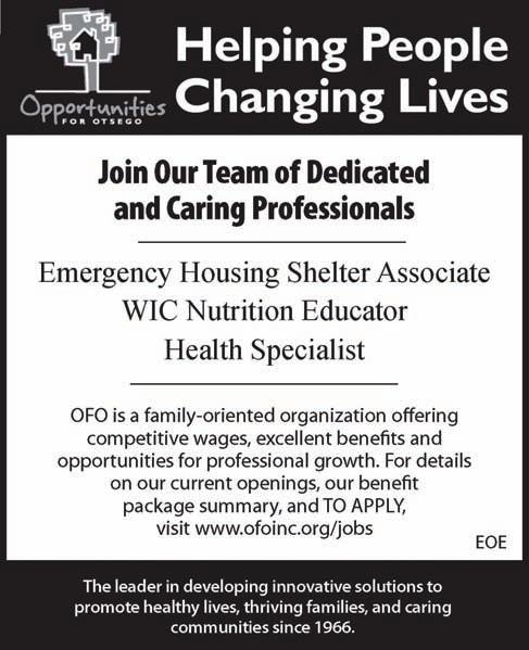 OTSEgO COUNTY—The public is urged to provide feedback on the draft Otsego County Energy Roadmap during the comment period from August 1 to September 13. The plan is the culmination of years of work by the county’s Energy Task Force, composed of local businesses and organizations, to plan for the area’s energy future. Comments may be made at https:// tinyurl.com/otsegoenergyroadmap. Businesses, institutions, municipalities and organizations are encouraged to contribute to the planning by submitting their own initiatives and projects. There will also be a webinar at noon on Thursday, August 8 to provide more information on the Roadmap and the challenges the county faces. To register, visit https://tinyurl.com/ycwc24tn.