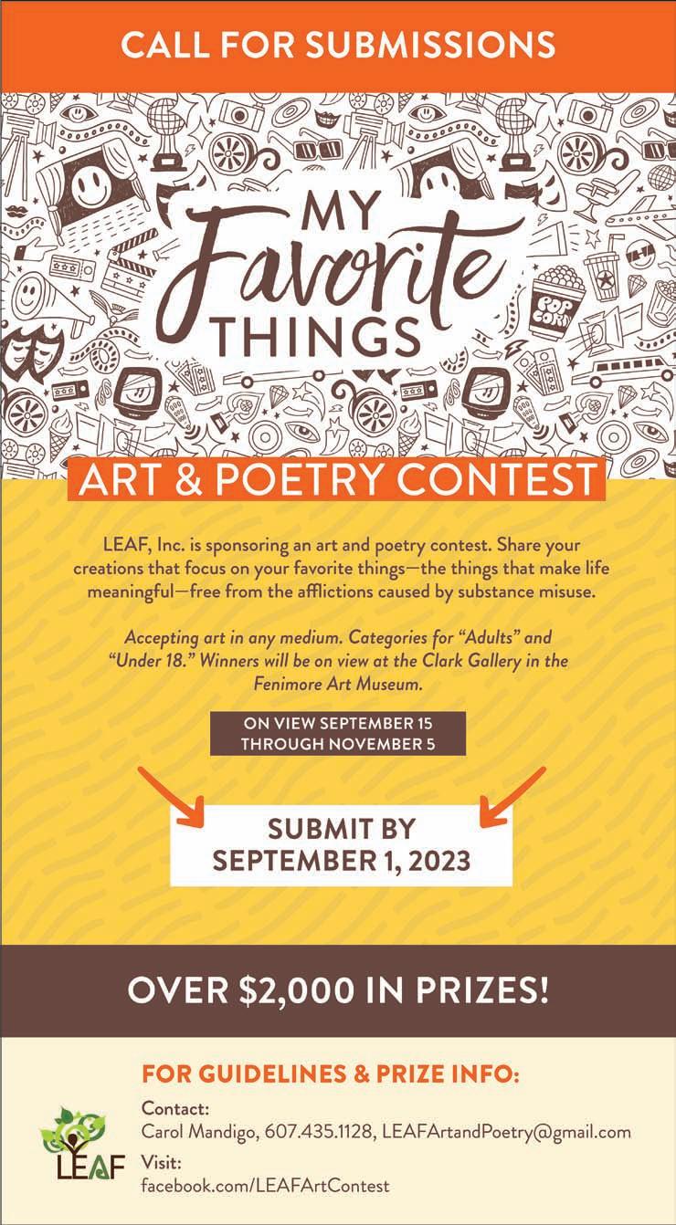 9-11 a.m. Fenimore Chamber Orchestra opens its 2nd season with “Classical Treasures.” Featuring works by Haydn, Mozart, others. Christ Church Episcopal, 46 River Street, Cooperstown. Visit fenimoreco.org/20232024/