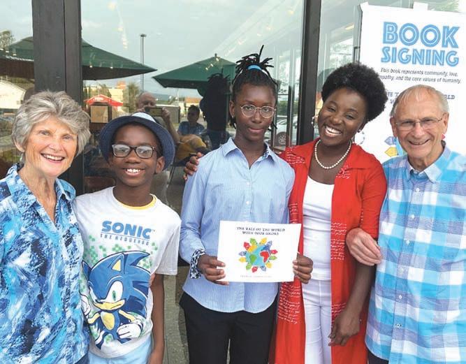 Photo provided Edyn Aiyemo holds a signed copy of her book while celebrating with her mother, her brother Ethan, to whom the book is dedicated, and Ron and Pam Zerbe.