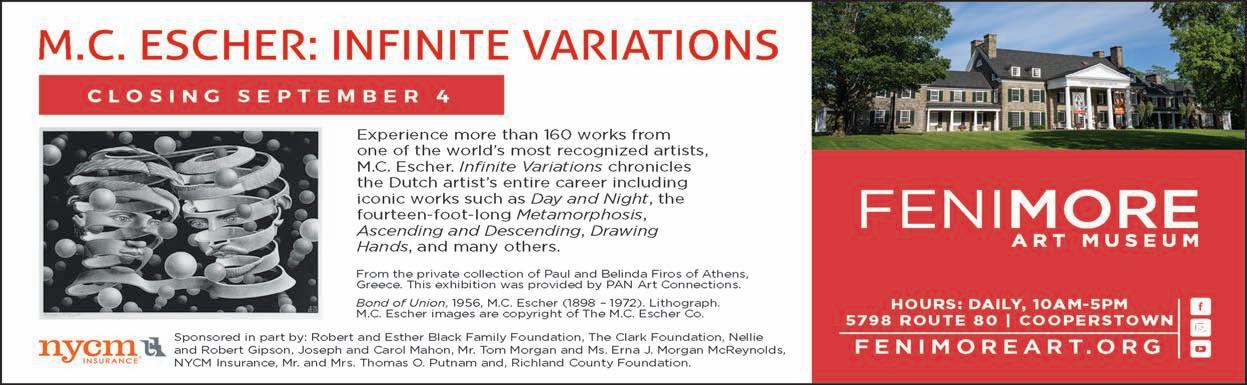 2 p.m. “Otsego: A Meeting Place.” Join a museum educator to learn the rich history of the Otsego Region. Included with museum admission. Fenimore Art Museum, Cooperstown. (607) 5471400.