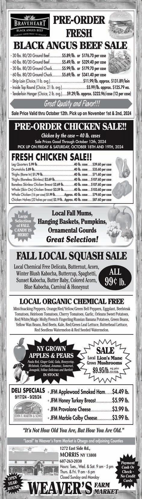 Subscription Rates: Otsego County, $69 a year. All other areas, $89 a year. First Class Subscription, $155 a year. Published Thursdays by Iron String Press, Inc. 21 Railroad Ave., Cooperstown NY 13326 Telephone: 607-547-6103. Fax: 607-547-6080. Email: info@allotsego.com • www.allotsego.com