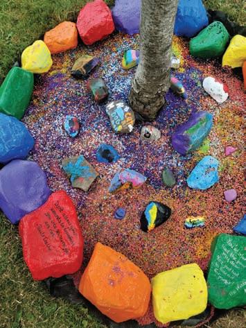 Photo by Mindy Baker EDITION OF NOVEMBER 3: With the guidance of head librarian Mindy Baker, Richfield Springs Public Library has created a Positivity Rock Garden. Thanks to a generous donation of colorful aggregate from Ruby Lake Glass and assistance from students at Richfield Springs Central School, the library’s eye-catching installation will inspire and lift the spirits of residents and visitors to the community.
