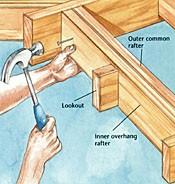 3. Fasten the outer overhang rafters to the ridge and lookouts, using 16d nails.