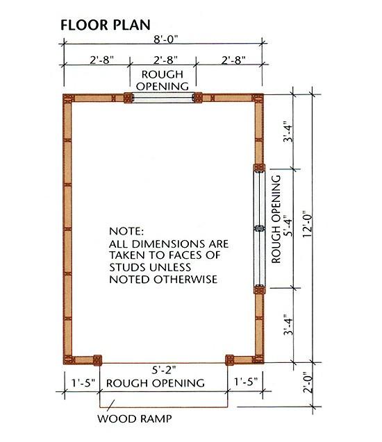 Note: Along the side walls, 8-ft. siding will cover the floor plywood by about 1/2" (this is necessary); if you want the siding to cover the floor framing, use 4 × 9-ft. sheets.
