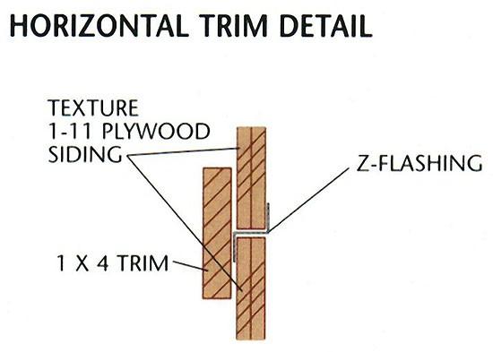 5. Install the horizontal 1 × 4 trim as shown in the ELEVATIONS. Fasten the trim with 8d galv. finish nails.