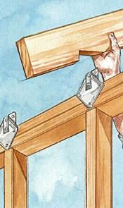 3. Install the rafters. Reinforce the rafter-wall connection with metal anchors—install them on all but the outer common rafters.