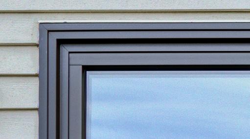 Metal sheathing moulded and adhered to the outdoor sections of a window frame.