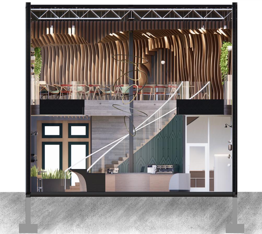 Coffee brings people together. It is not just drinking coffee, it is the act of people gathering to converse and socialize. Centralized is a coffee shop that values these concepts. The interior space and form of the design concept draw inspiration from the curvilinear anatomy of a coffee bean, creating a visually captivating and cohesive environment. The fluid contours and organic shapes of the coffee bean are reflected in the architectural elements, such as the curved wall formation and spatial transitions. These design features emulate the sensual and inviting nature of the coffee bean, evoking a sense of comfort and warmth within the space.