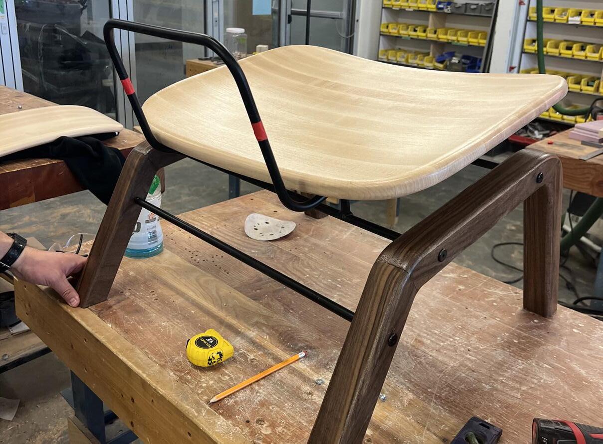 The Mysa lounge chair was designed based on the juxtaposition of the rich, dark walnut contrasting against the light, warm tones of the white oak. The metal structure incorporated suspends the seat, seperating the legs and base, creating an illusion of weightlessness. This unique combination of materials not only creates a visual contrast but also highlights the inherent natural beauty of each wood used.