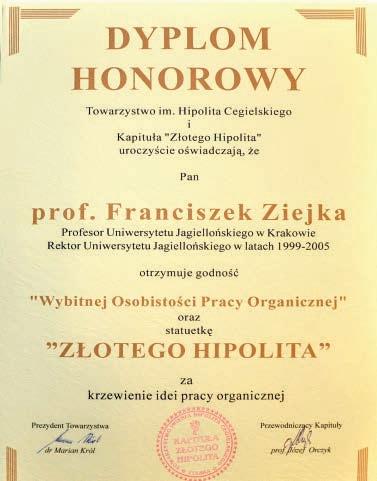 ZŁOTY HIPOLIT DLA PROFESORA FRANCISZKA ZIEJKI