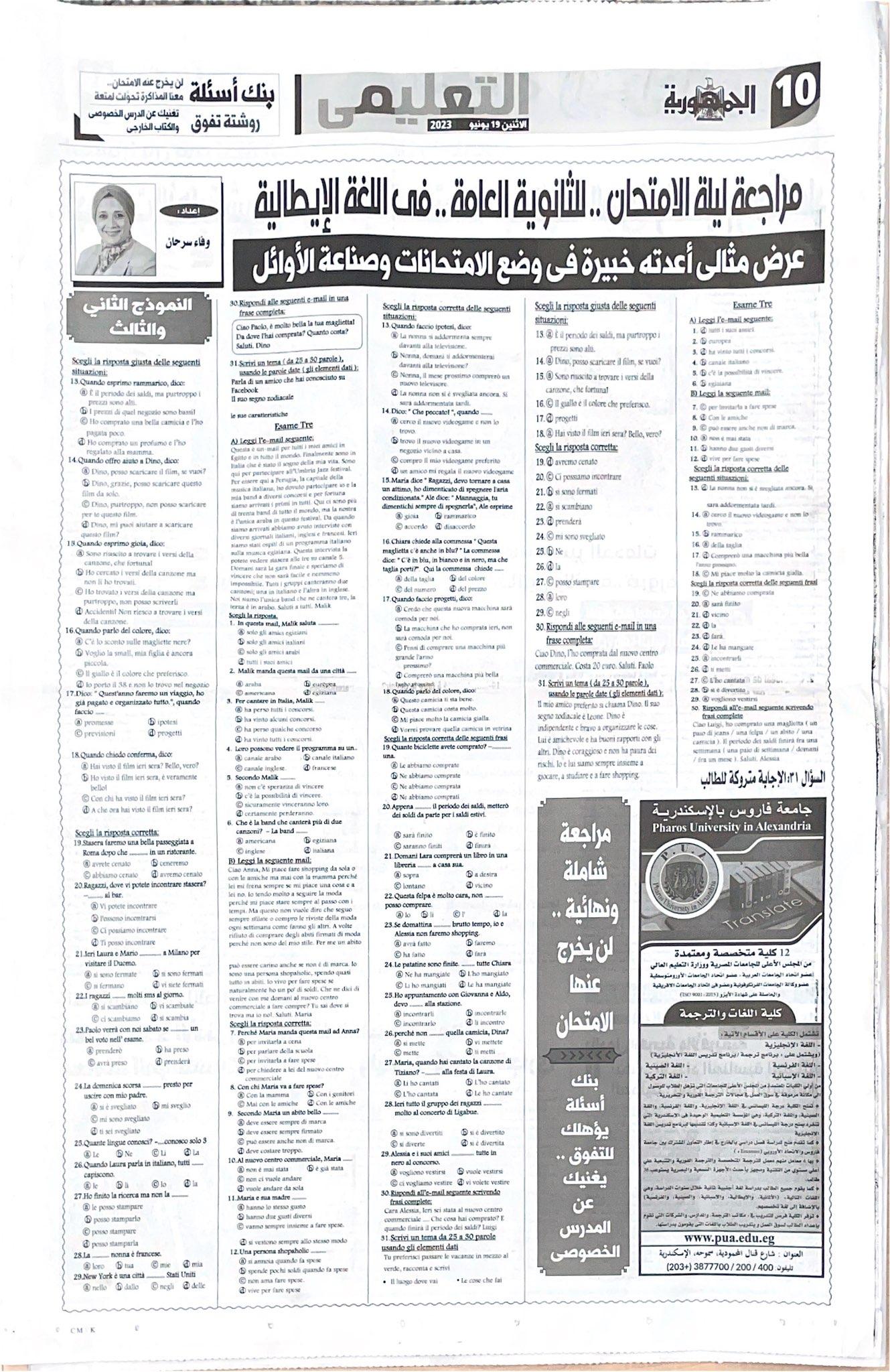 لغة ايطالية ثانوية عامة