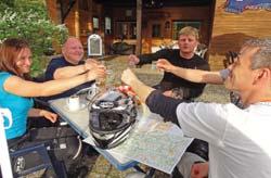 Der Chef, Stephan, fährt seit über 20 Jahren Motorrad und führt seit 2009 ein Bikerhotel. Er ist begeisterter Motorrad- und Vespafahrer. Eines seiner Hobbys ist es, seinen Gästen die Touren zu erklären. Er hat selbst Freude daran, wenn die ausgewählte Tour bei seinen Gästen dann auch Gefallen findet.