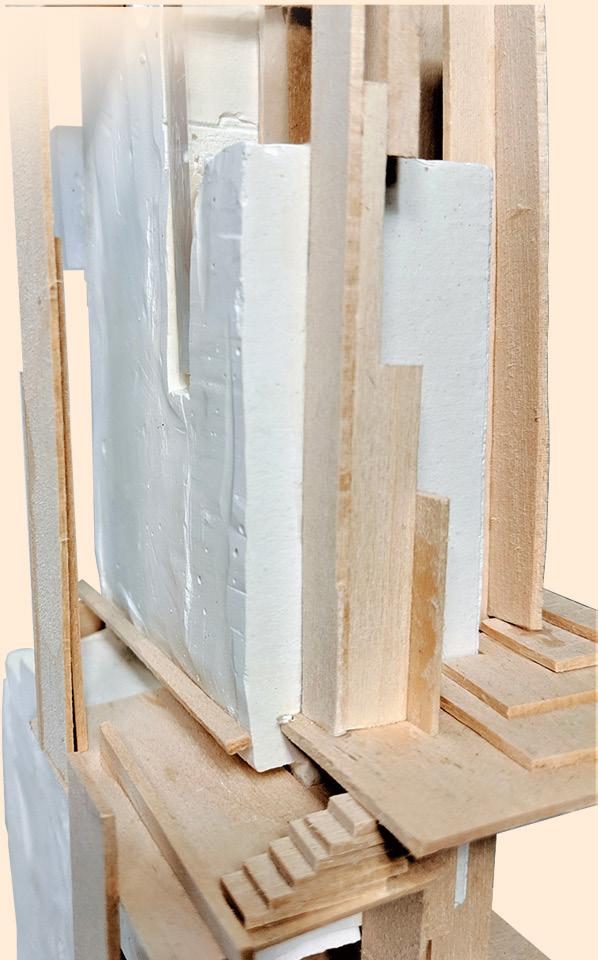 Using black spray paint on mylar paper we studied the spaces created in three different sections of the completed model.