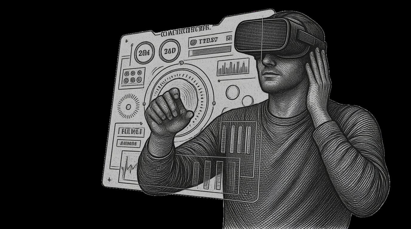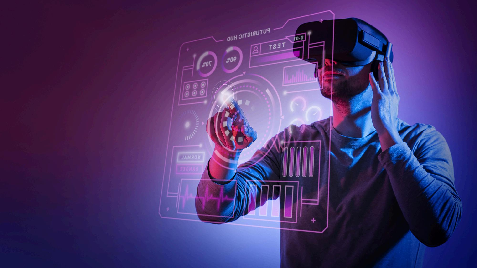 Usuariointeractuandocon sistemadecomprainmersivo, entornodigitalfuturista.