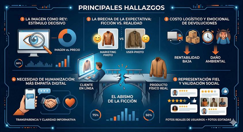 Nuestrainvestigación demuestraqueel"Abismo delaFicción"noesun errorestético,sinouna falladeempatíadigital.La verdaderainnovaciónno essolotecnología avanzada,sinosuuso parahumanizarel comercioelectrónico, reduciendolafrustracióny recuperandolaconfianza delusuario