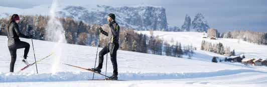 L’Alpe di Siusi, innevata e baciata dal sole, è un vero paradiso per gli appassionati di sci di fondo e o re 80 km di piste di varia di icoltà, situate a un’altitudine compresa tra i 1.800 e i 2.200 m s.l.m. Le piste spaziano da brevi tracciati di 1,4 km per principianti fino alla pista “Joch” di 15,4 km, la più lunga pista per lo sci di fondo della regione.