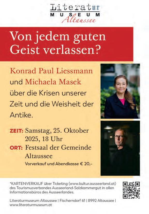 und Herbert Laimer, die mit spannenden Ergänzungen und persönlichen Erinnerungen das Gezeigte vertieften. Immer wieder hörte man leise Seufzer: „Wie schön war es einmal …“ Der Abend war nicht nur eine Hommage an das reiche kulturelle Erbe der Region, sondern auch ein kraftvoller Beweis für die engagierte Museumsarbeit des Teams rund um das Kammerhofmuseum. Der Vortrag wurde von der zahlreich erschienenen Besucherschaft mit großer Begeisterung aufgenommen. Im Anschluss wurde das „MuseumsBeisl“ im Kaisersaal eröffnet, der Abend wurde von der „Fliederstaud’nmusi“ musikalisch veredelt und viele Besucher nutzten die erweiterten Öffnungszeiten dieses Abends, um auch die äußerst spannende Sonderausstellung „1945 –Kriegsende am Schauplatz Ausseerland“ zu besichtigen. Ein gelungener Abend, der zeigte: Geschichte lebt – besonders dann, wenn sie mit Herz und Hingabe erzählt wird.