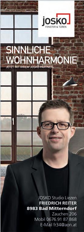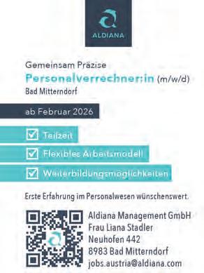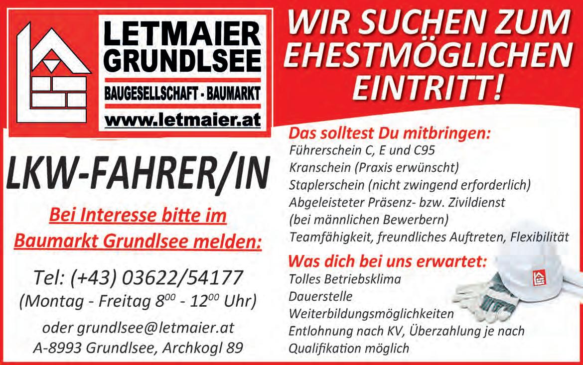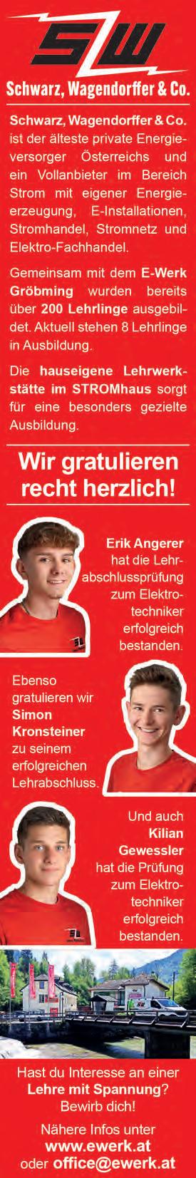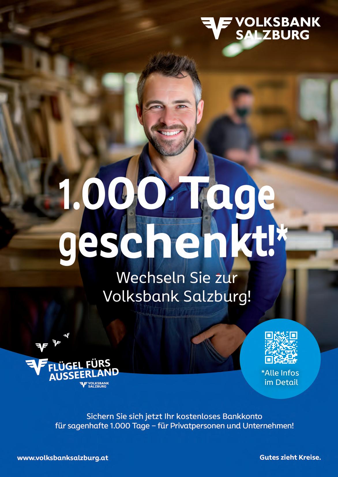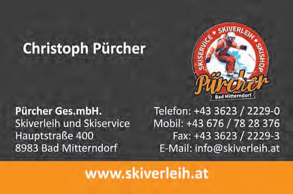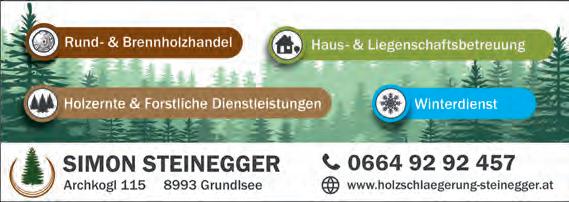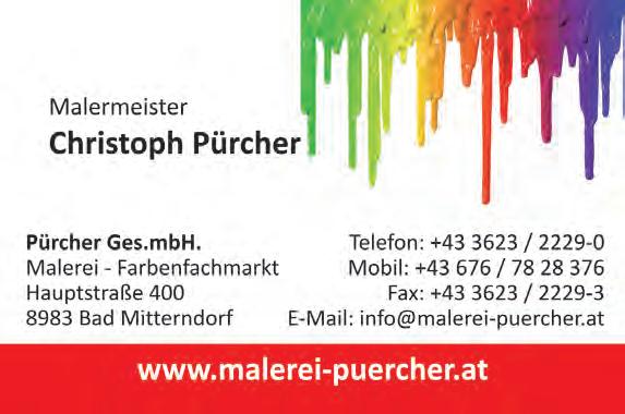 email: redaktion@alpenpost.at Für den Inhalt verantwortlich: Florian Seiberl. Druck: Druckerei WALLIG, 8962 Gröbming. Erscheinungsweise: 14-tägig. Einzahlungen auf das Konto AT764501030400030000 bei der Volksbank Salzburg. Aufgrund der Lesbarkeit der Artikel wird bei Bedarf nur eine Geschlechtsform gewählt. Dies bedeutet jedoch keine Benachteiligung des anderen Geschlechtes. Die mit ß versehenen Artikel sind bezahlte Anzeigen. Die Redaktion behält sich das Recht vor, zugesandte Leserbriefe zu kürzen und übernimmt keine Haftung für den Inhalt kostenloser Ankündigungen. Alle Rechte vorbehalten.