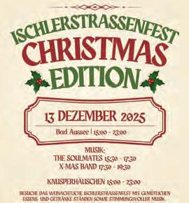 Nach dem großen Erfolg im Sommer findet am Samstag, 13. Dezember, das Ischlerstraßenfest in der „Christmas Edition“ statt. Die jungen Kaufleute des Vereins „D’Ischlerstraßler“ laden zum gemütlichen Straßenfest in stimmungsvoller Atmosphäre. Von 15 bis 23 Uhr wird