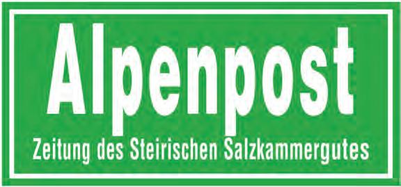 E-mail: redaktion@alpenpost.at Für den Inhalt verantwortlich: Florian Seiberl. Druck: Druckerei WALLIG, 8962 Gröbming. Erscheinungsweise: 14-tägig. Einzahlungen auf das Konto AT764501030400030000 bei der Volksbank Salzburg. Aufgrund der Lesbarkeit der Artikel wird bei Bedarf nur eine Geschlechtsform gewählt. Dies bedeutet jedoch keine Benachteiligung des anderen Geschlechtes. Die mit ß versehenen Artikel sind bezahlte Anzeigen. Die Redaktion behält sich das Recht vor, zugesandte Leserbriefe zu kürzen und übernimmt keine Haftung für den Inhalt kostenloser Ankündigungen. Alle Rechte vorbehalten. Druck- und Satzfehler vorbehalten.