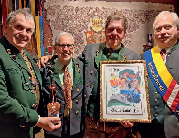 ohne Politik, Religion und Geschäftliches. Dem Männerbund gehören weltweit an die 10.000 Mitglieder an – Männer, die Namen und Beruf an der Garderobe abgeben. Das 75 Jahre alt gewordene Schlaraffenreich „Aquae Salis” mit fast 60 Mitgliedern ist ein überaus aktives und bestens aufgestelltes „Wohlfühlreich”, das zu den besten des Landes zählt und auf eine überaus erfreuliche Aufwärtsentwicklung zurückblicken kann.