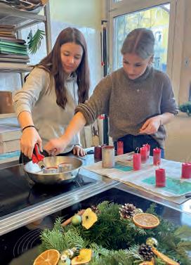 Die HLW Bad Aussee lebt die Tradition im Jahreskreis Im Rahmen des Jahreskreisprojekts, in dem regionale und traditionelle Bräuche bewusst gepflegt und erlebbar gemacht werden, widmete sich die dritte Klasse HLW dem gemeinsamen Adventkranzbinden. In entspannter Atmosphäre und mit viel Spaß entstanden sehr persönliche Kränze, liebevoll geschmückt mit getrockneten Orangen, Äpfeln, anderen Naturmaterialien und unseren selbst gegossenen Kerzen. Der Adventkranz selbst hat eine lange Tradition: Er geht auf den evangelischen Theologen Johann Hinrich Wichern zurück, der 1839 für Kinder in einem Hamburger Waisenhaus erstmals einen Kranz mit Kerzen entzündete, um die Zeit bis
