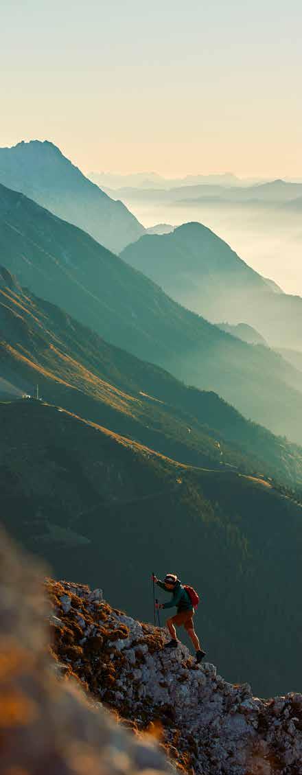 Ge R h AR d m ö SS me R geht der richtigen Stocktechnik auf den Grund. Damit diese gleich angewandt werden kann, „weitwandert“ cAROLIN Sch AR fe NS te IN durch Bergsteigerdörfer. Bergwandern geht aber auch anders: Das weiß eLISAB eth PAINSI , die einen geländegängigen Rollstuhl vorstellt. Ab ins Gelände geht auch mARKUS Sch WAIG e R , und zwar in seinem Artikel über das Klettern mit Kindern, in dem er erklärt, was mit den Kleinen am Fels zu beachten ist. Kinder und Eltern arbeiten Jahr für Jahr gemeinsam im viel gelobten Familienbergwaldprojekt Sölktäler zusammen, das Ve RONIKA G Rü NS ch Ach N e R-Be RG e R begleitet. Übrigens: Auch die Camps der Ferienwiese der Alpenvereinsjugend sind legendär, und davon weiß Ve RA K A d L etz ein Liedchen zu singen. Bergauf #3.2022 erscheint Anfang Juni.