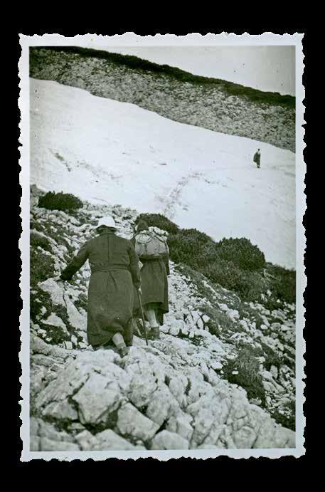 Noch zwei Informationen gilt es nachzutragen: den Fotografen und die Identität der Frauen. Wir können davon ausgehen, dass Franz Großschedl die Aufnahme gemacht hat. Während die Frauen vor ihm durchs Gelände stapften, machte er kurz Halt, packte seine kleinformatige Kamera aus und drückte auf den Auslöser. Franz Großschedl war ein passionierter Hobbyfotograf. Geboren 1890 in Ungerdorf bei Weiz, verschlug es ihn nach Graz, er erlernte ursprünglich das Schusterhandwerk und arbeitete dann als Bahnbediensteter. In der Freizeit war er mit seiner Familie viel in den Bergen unterwegs. Die beiden Frauen vor ihm sind seine Ehefrau und seine Tochter, beide tragen denselben Vornamen: Christine.