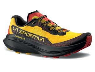 Gelungene Weiterentwicklung des vielseitigen Trailrunning-Modells für ambitionierte Läufer:innen. Der Prodigio 2 bietet mehr Komfort im Knöchel- und Zehenbereich, eine stabilere Vorfußkonstruktion unterstützt bei dynamischen Richtungswechseln auf technischen Trails. Dämpfung, Passform und Laufgefühl bleiben ausgewogen und direkt. Das atmungsaktive 3D-Mesh-Obermaterial trocknet rasch, das Innenfutter besteht aus recycelten Materialien. Die FriXion®-Red-Sohle sorgt für verlässlichen Grip auf wechselndem Untergrund, der XFlow™-Schaum bietet bei 6 mm Drop eine reaktive, dennoch kontrollierte Dämpfung. Mit 225 g (Women) bzw. 265 g (Men) pro Schuh bleibt das Modell auch auf längeren Distanzen effizient. www.lasportiva.com