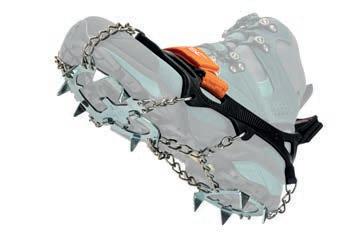 Leichte Grödel für Wander:innen, die im Frühjahr Schneefelder sicher queren möchten. 13 gehärtete Edelstahlspitzen (7 mm und 17 mm) bieten Halt auf hartem Altschnee und vereisten Wegpassagen. Das elastische SilikonElastomer sorgt gemeinsam mit dem Klettband am Rist für einen stabilen, rasch anpassbaren Sitz. Die Alp 2.0 sind als PSA (Persönliche Schutzausrüstung) zertifiziert, tragen das CE-Zeichen und werden in Italien gefertigt („Made in Italy“). Bei sicherheitsrelevanter Ausrüstung ist geprüfte Qualität wesentlich. Mit rund 430–480 g pro Paar bleiben sie rucksacktauglich und erhöhen die Trittsicherheit auf moderaten Schneefeldern und eisigen Übergängen deutlich. www.nortecsport.com