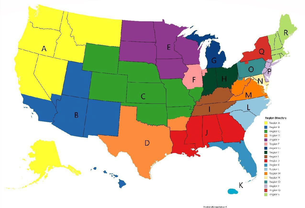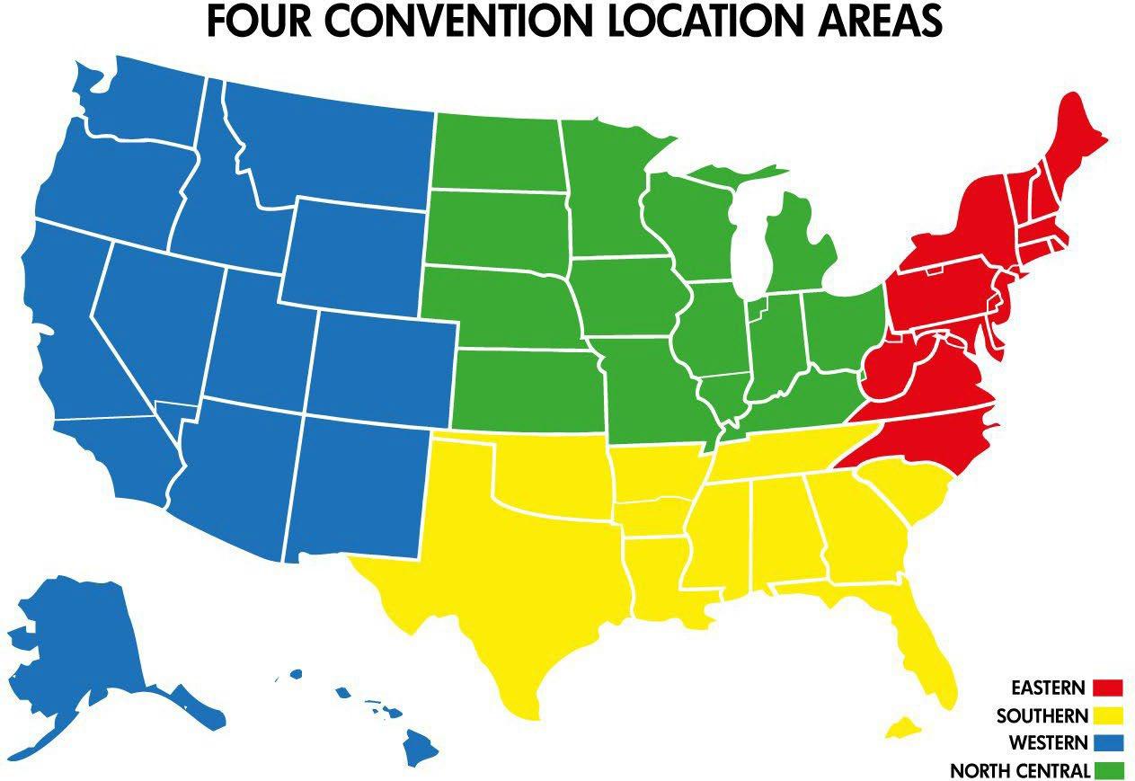Regional boundaries, submitted by the National Board to the National Convention, should contain as practical an equivalent number of chapters as reasonable geographic alignment of sections allow.