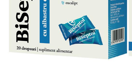 6 Sănătate Theratuss Natural aromă de zmeură 16 comprimate de supt Septosol cu albastru de metilen 20 comprimate de supt Centrum *Reducerile sunt minime și se aplică, în limita stocului disponibil, în baza unui card de fidelitate Club Alphega valabil, la achiziționarea oricărui produs participant la campanie, existent în farmaciile semnalizate Alphega. Listele cu produsele și farmaciile participante la campanie se regăsesc în regulamentul campaniei, disponibil spre consultare, gratuit, oricărui solicitant pe www.alphega-farmacie.ro sau în farmacii. Informațiile despre produse și reducerile aferente sunt prezentate sub rezerva erorilor de tipar. Imaginile sunt cu titlu de prezentare. Aceste produse sunt suplimente alimentare și nu înlocuiesc o alimentație variată și echilibrată. Se recomandă citirea cu atenție a prospectului sau a informațiilor de pe ambalaj. Dacă apar manifestări neplăcute, adresați-vă medicului sau farmacistului. %20 REDUCERE* %20 REDUCERE* %10 REDUCERE*