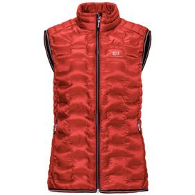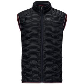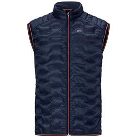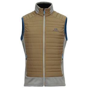 Technical mid-layer vest that combines stretch fleece with lightly insulated sections for lightweight warmth.