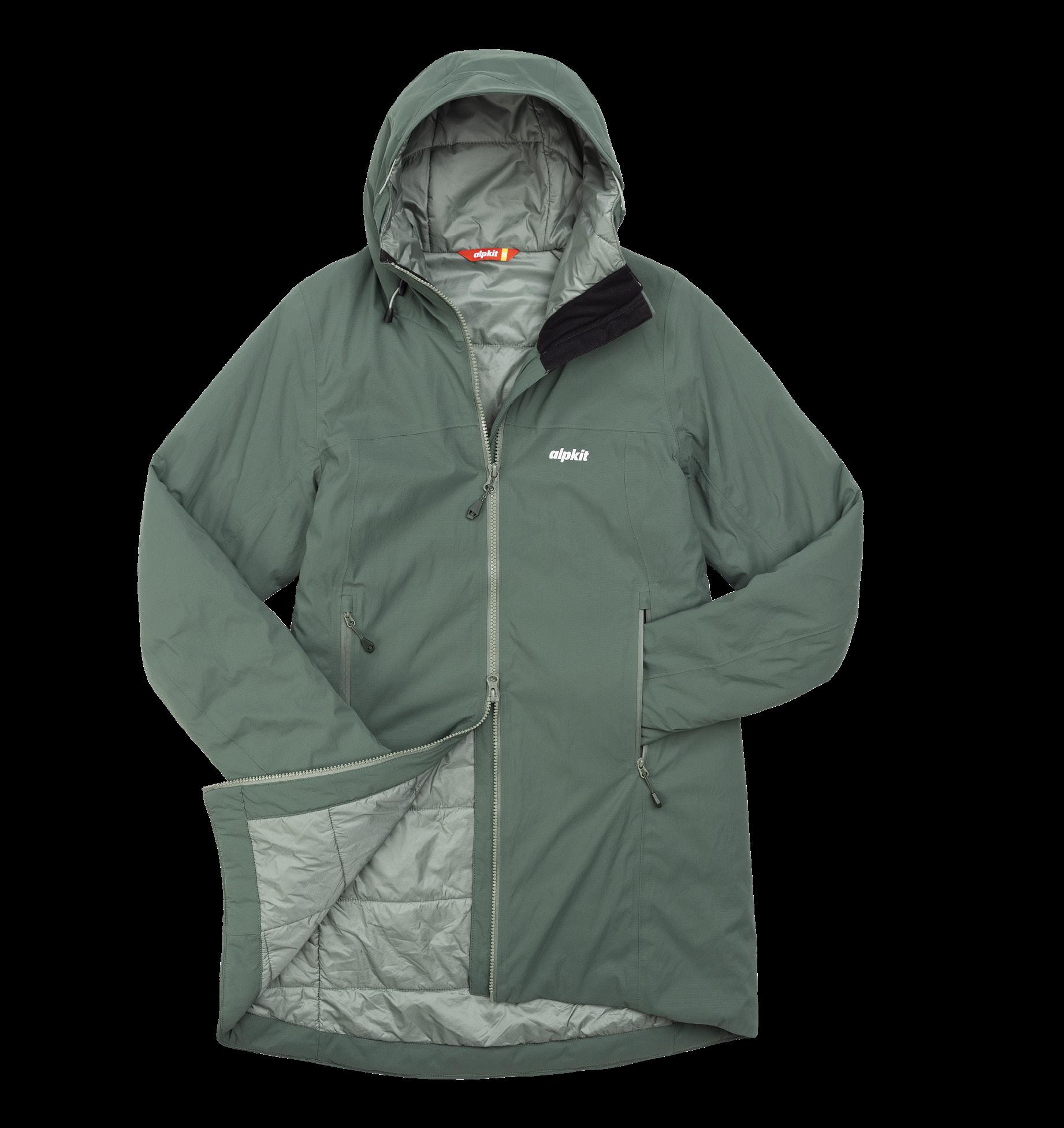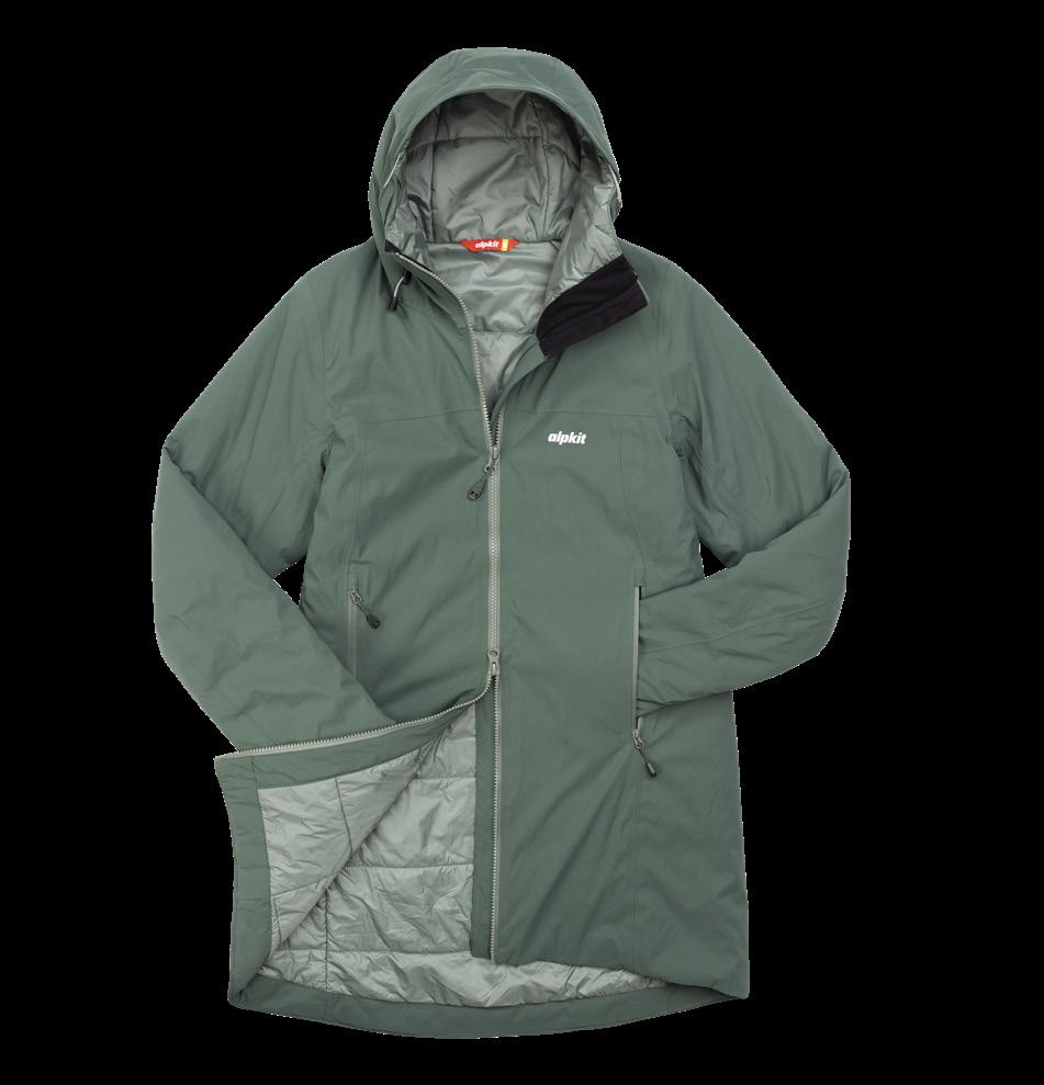 One jacket to rule them all! The Solace is the first of its kind in the Alpkit family. Our brand new insulated waterproof is made with damp-proof synthetic insulation that keeps you warm when it’s cold, and dry when it’s wet. Supremely versatile, the Solace can be used as a walking jacket, a ski jacket, or for instant warmth after a winter swim or ride. It’s got hand warmer pockets and glovefriendly cuffs to accommodate ever-cooling extremities. Made with 100% recycled lining, 70% recycled insulation and a PFC-free DWR so it won’t leak nasties into the environment. A winter one-stop-shop layer.