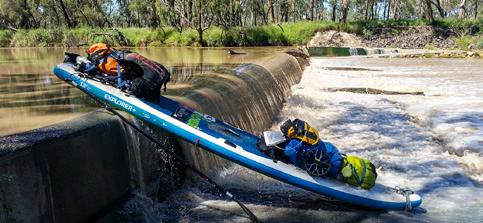In 50 days I managed to drag and paddle almost 1000 tough miles, but a few days out of Bourke in New South Wales I began to fade. In the middle of 40°C days my muscles stopped working. At night my head felt as if it was going to explode, my limbs cramped and I threw up what little food I managed to get down. When I eventually ended up in Bourke’s hospital emergency ward it was clear that my kidneys were beginning to fail and my muscles were cannibalising themselves. Doped up on morphine, blood and spinal fuid were taken to test, still the doctors were at frst mystifed. I spent a couple of days in and out of emergency and another four days in the infectious diseases ward. Nurses and visitors wore gloves, face masks and plastic coveralls – at least I got a room to myself. Leptospirosis Meningitis (known as Weil’s Disease) was the culprit. Sharing the ofen stagnant water with the wild pigs, kangaroos, and cattle was always a risk.