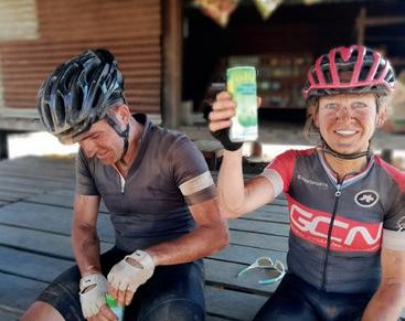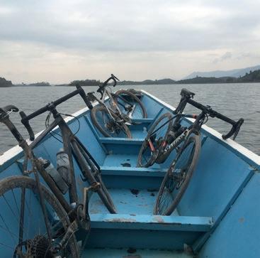flat dirt road made up entirely of desiccated pale grey mud, carved into a bone-shaking washboard of ridges interspersed with patches of deep dust. There was no good line. There was not enough water. There was nothing but slow miserable progress for hours in the heat. Not many things have tasted as good as that can of coconut water 100km in.