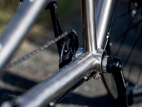 Reynolds 631 steel, cold worked, air hardened seat tube, top tube and down tube