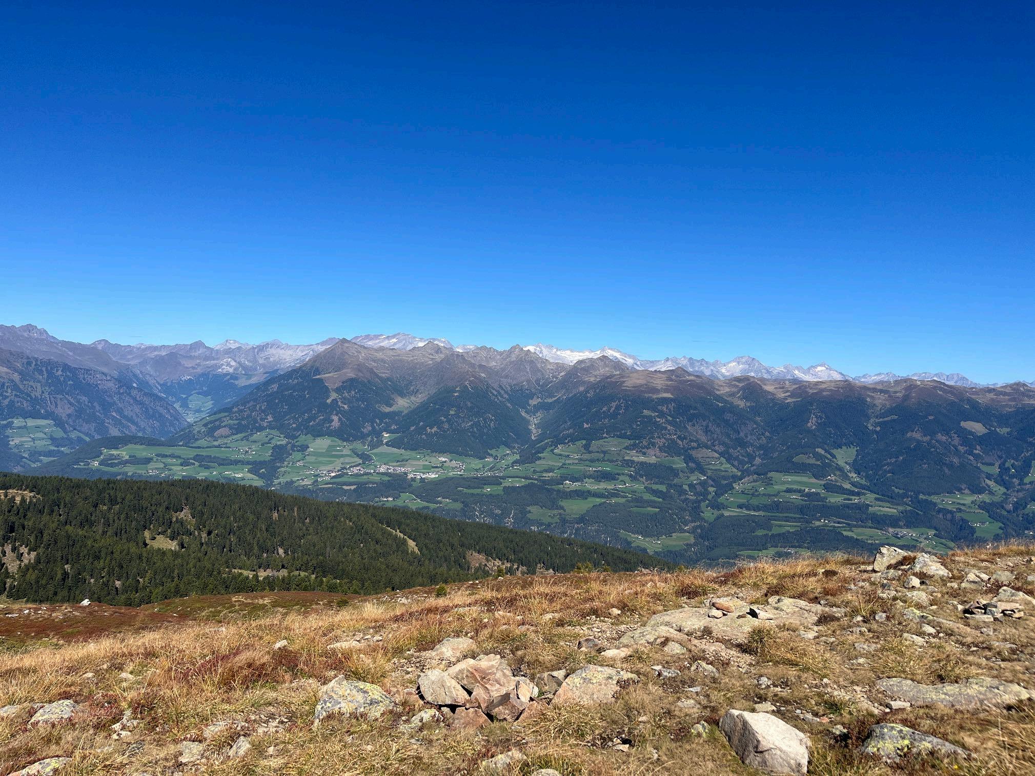 Oberhalb von St. Andrä geht es mit der Seilbahn hinauf auf über 2000 Meter Höhe. Das Panorama auf der Plose ist ein erster Vorgeschmack auf die nächsten