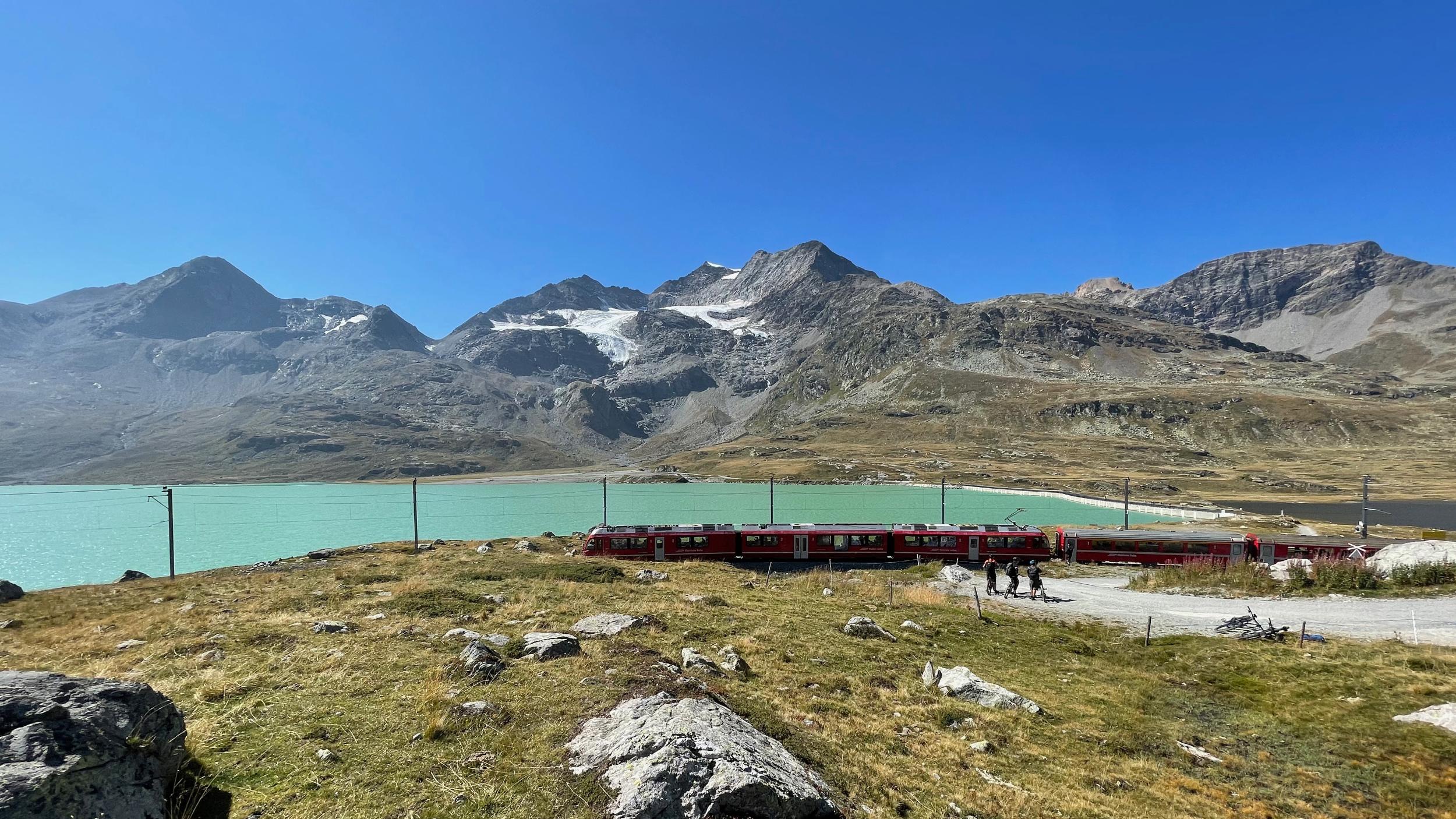 Wir rollen am Morgen auf der Langlaufstrecke aus dem Wintersportparadies Livigno hinaus. Wir sind bereits 1800 Meter hoch und damit mitten drin in einer spannenden Berglandschaft. Die Forcola di Livigno ist unser erstes Ziel. Wir erreichen den Pass auf herrlichen Schotterwegen durch eine regelrechte Murmeltier Kolonie. Steht der Wind günstig, kommen wir ganz nah an die possierlichen Tierchen ran. Ein stärkender Cappuccino oben in der Alpini-Bar und wir schauen um die Ecke. Vor uns liegen die Schweizer Gletscher zum Greifen nah. Der Ausblick ist gigantisch. Direkt vor uns ragt der Bernina Gletscher auf, tief unter uns liegen die zwei Gletscherseen. Der legendäre Bernina-Express gleicht von hier oben einer Spielzeug-Eisenbahn. Es folgt „Mountainbiken at it’s best“ auf nur leicht geshapeten Naturtrails. Für viele das Highlight der gesamten Tour. Schneller als gedacht ist der Bernina-Pass erreicht. Von da an geht