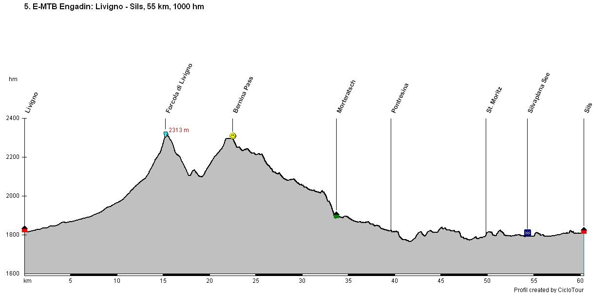 E-MTB Transalp Engadin 5. Etappe - 55 Kilometer - 1000 Höhenmeter von Livigno nach Sils