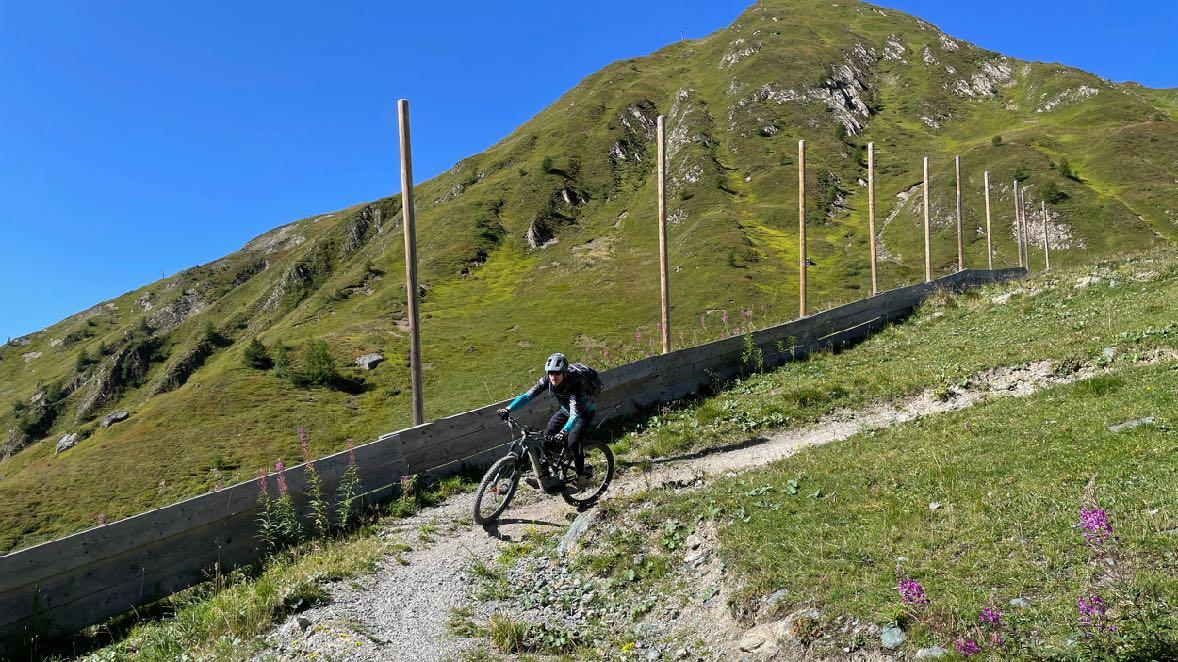 Der Alpenhauptkamm wird heute bezwungen. Wahlweise hilft uns die Seilbahn mehr oder weniger dabei. Mit der Gondel geht es zunächst für alle bergauf bis zur 2300 Meter hoch gelegenen Idalp. Dort ist eine Entscheidung fällig. Entweder gut 400 steile Höhenmeter bergauf durch schönste Bergkulisse, oder ein weiterer Sessellifttransfer bis zum 2700 Meter hoch gelegenen Idjoch. Die Fels- und Geröllandschaft um uns herum ist mehr als beeindruckend, der Blick vom Alpenhauptkamm gigantisch. So schön können die Berge sein. Wie im Rausch vernichten wir dann Höhenmeter um Höhenmeter und passieren dabei gleich mehrfach die Landesgrenzen. Ischgl und das schweizerische Samnaun haben sich seit Jahren den Mountainbikern verschrieben und so gibt es hier eine ganze Reihe von gebauten Trails. Wir nehmen die Trailpassage hinunter zur Alp Trida. meist auch ein willkommener CappuccinoStopp. Dann geht es weiter bergab bis ins Schmugglerdorf Samnaun. Nach