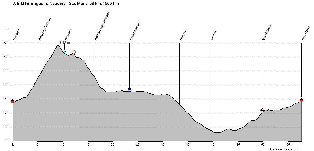 E-MTB Transalp Engadin 3. Etappe - 58 Kilometer - 1500 Höhenmeter von Nauders nach Sta. Maria