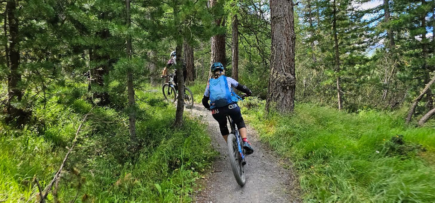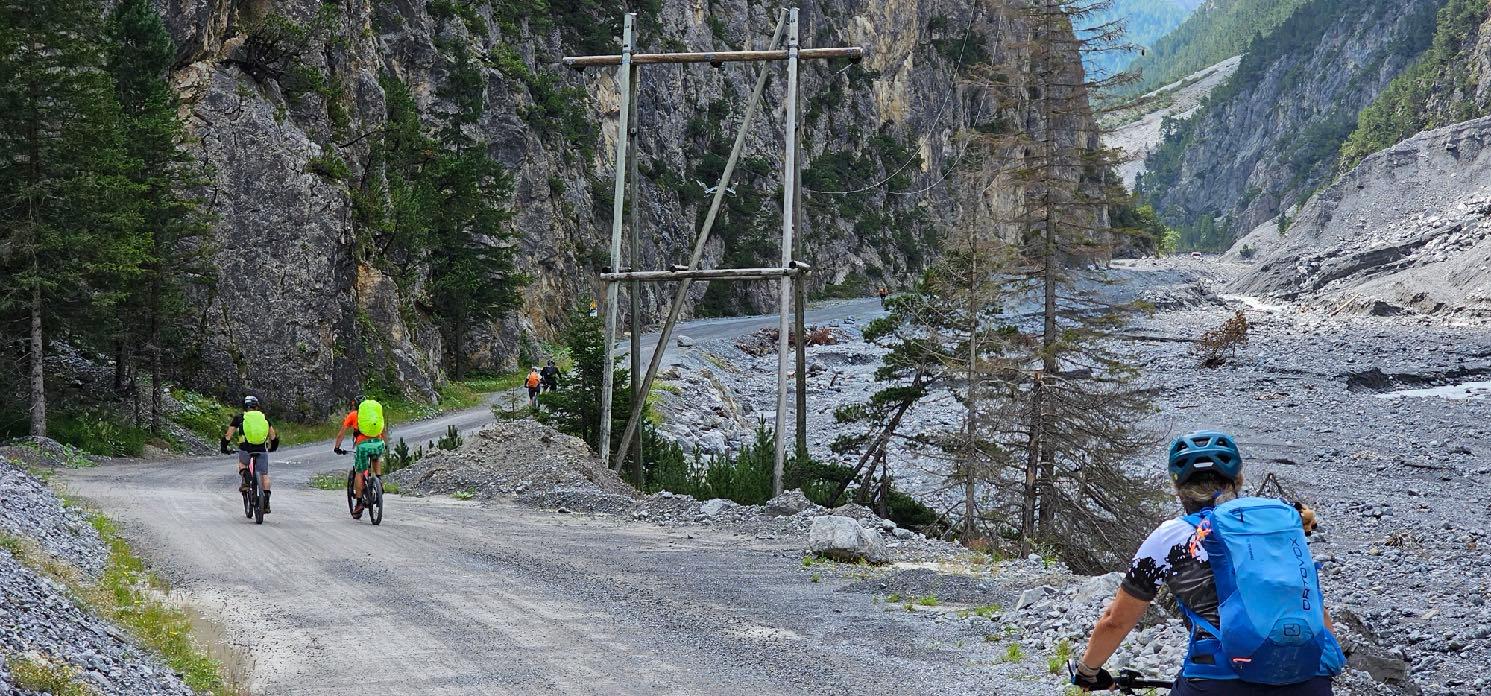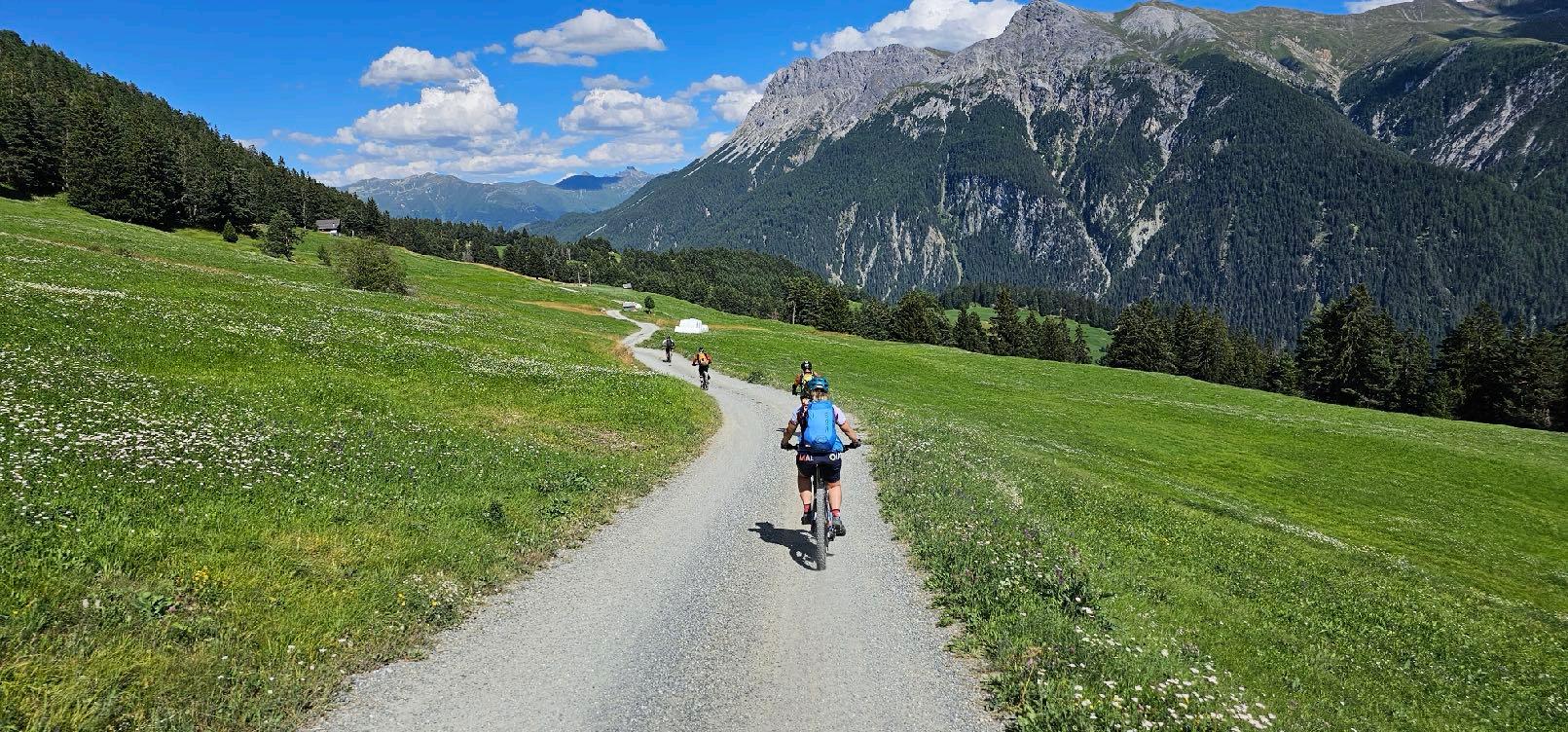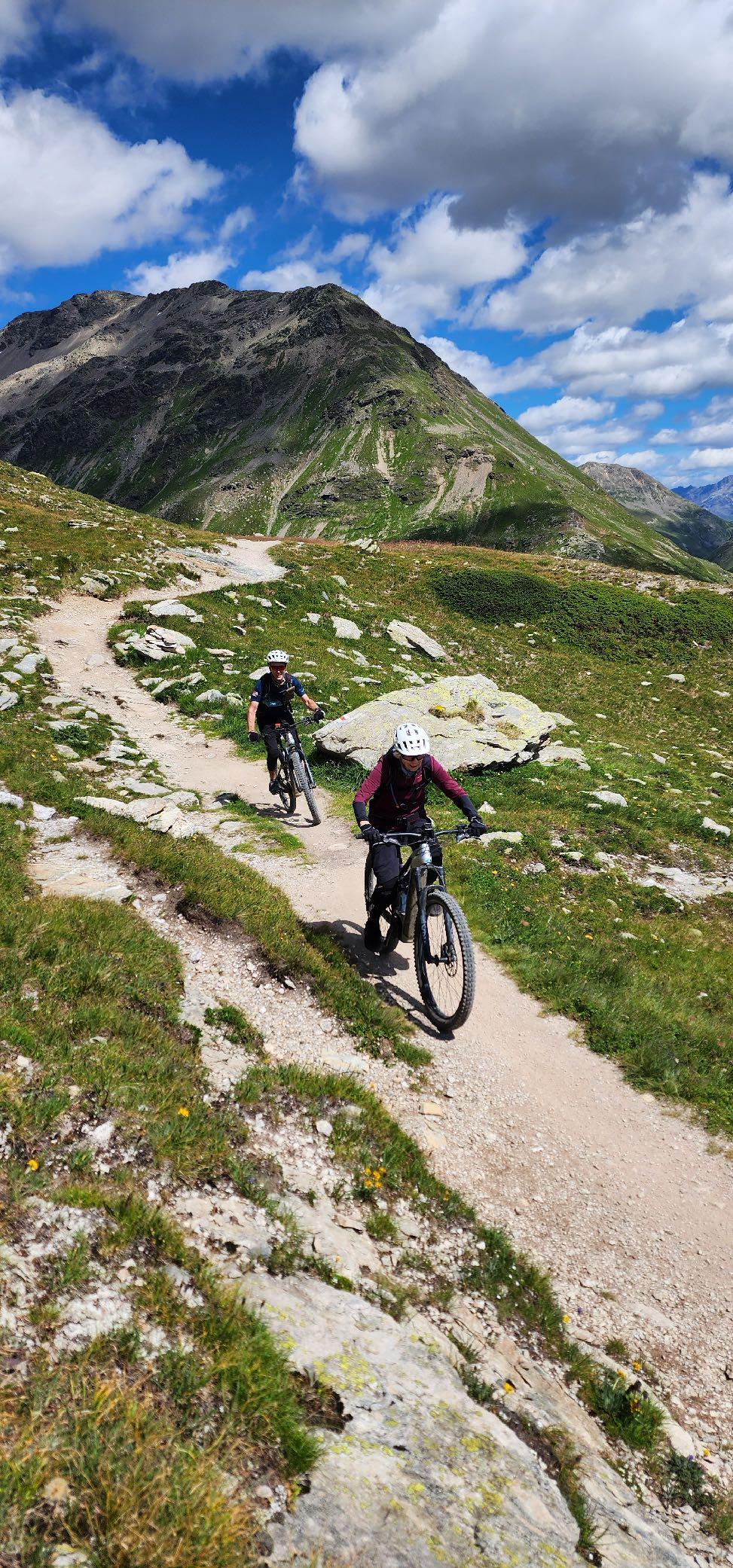Die ersten 20 Minuten über Asphalt zur Norbertshöhe. Von hier über Schotterwege bis zum Einstieg in die Martina-Trails. Es geht teils technisch und knifflig hinunter ins Unterengadin. Bis Scuol auf Forst- und Radwegen in moderatem Tempo immer leicht bergan. Ab Scuol nehmen die Prozentzahlen zu und es geht nun steiler bergan bis S-charl. Es geht weiter bergauf auf viel Schotter und toller Landschaft bis zur Passhöhe. Auch diese Strapazen werden belohnt. Es folgt ein super Trail bis nach Sta. Maria. Wir rollen über Trails und Forststraßen stetig bergab. Sind die ersten Meter teils noch steil und voller technischer Herausforderungen, wird der Pfad später immer mehr zum Flow. Kurz vor Sta. Maria dann das Grande Finale. Hier haben die Locals wirklich ganze Arbeit geleistet. Einige der Flowtrails wurden extra für Mountainbiker gebaut oder hergerichtet.