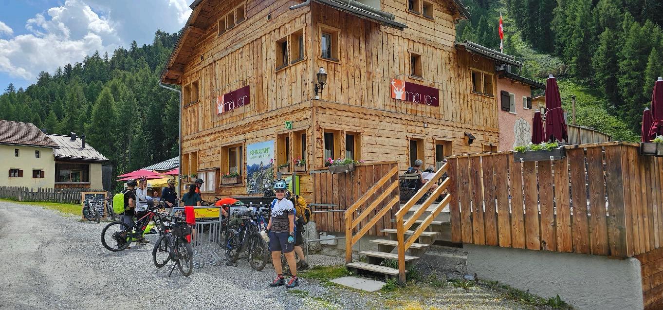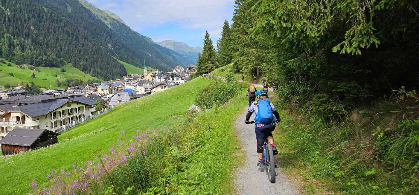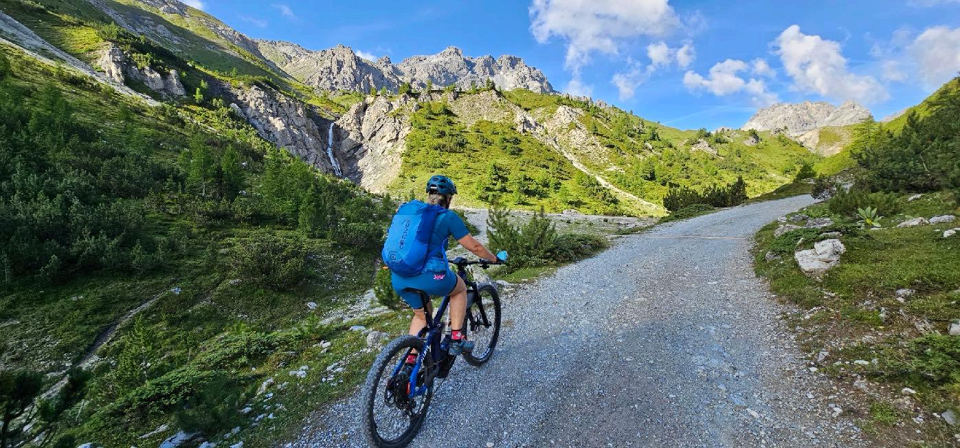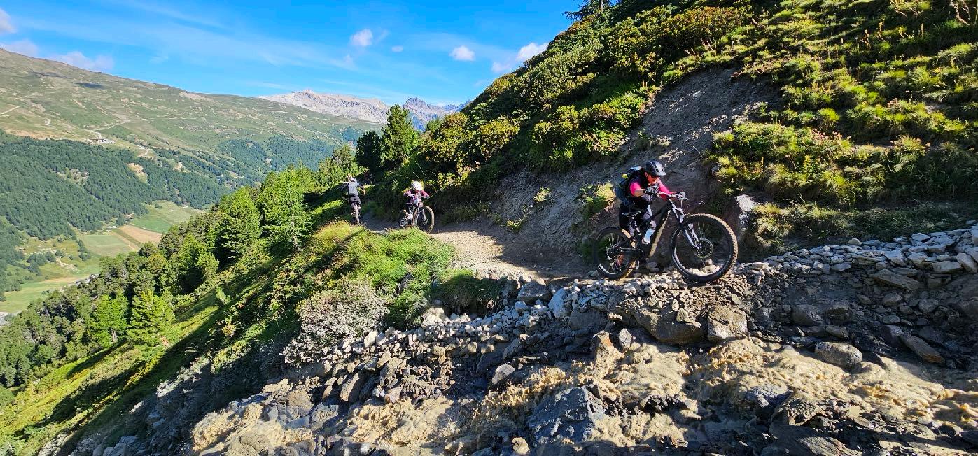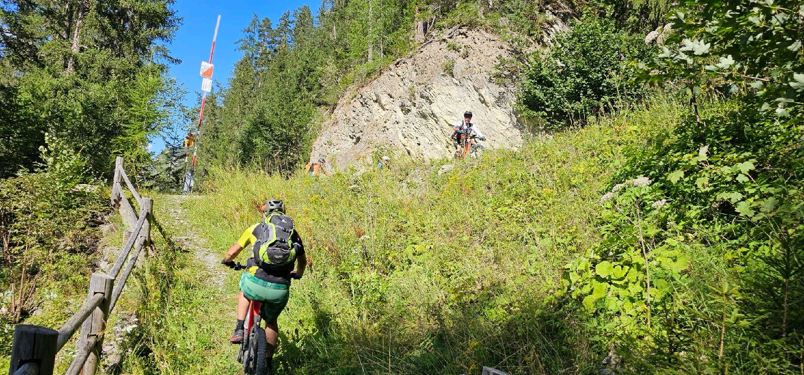 Die ersten 20 Minuten über Asphalt zur Norbertshöhe. Von hier über Schotterwege bis zum Einstieg in die Martina-Trails. Es geht teils technisch und knifflig hinunter ins Unterengadin. Bis Scuol auf Forst- und Radwegen in moderatem Tempo immer leicht bergan. Ab Scuol nehmen die Prozentzahlen zu und es geht nun steiler bergan bis S-charl. Es geht weiter bergauf auf viel Schotter und toller Landschaft bis zur Passhöhe. Auch diese Strapazen werden belohnt. Es folgt ein super Trail bis nach Sta. Maria. Wir rollen über Trails und Forststraßen stetig bergab. Sind die ersten Meter teils noch steil und voller technischer Herausforderungen, wird der Pfad später immer mehr zum Flow. Kurz vor Sta. Maria dann das Grande Finale. Hier haben die Locals wirklich ganze Arbeit geleistet. Einige der Flowtrails wurden extra für Mountainbiker gebaut oder hergerichtet.