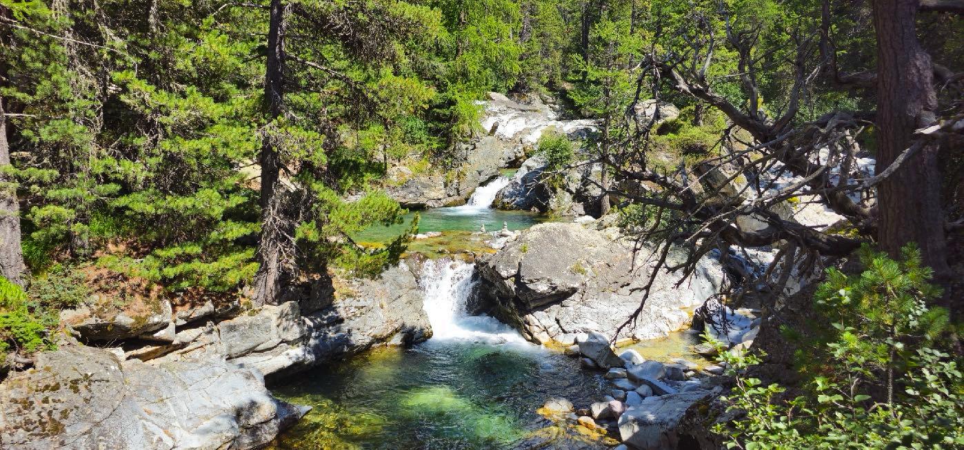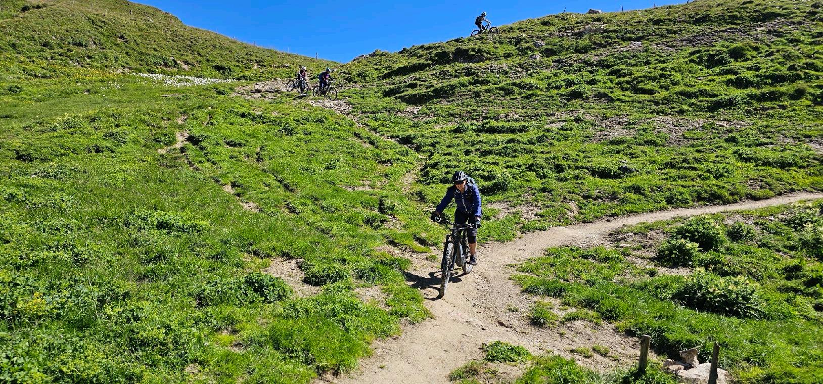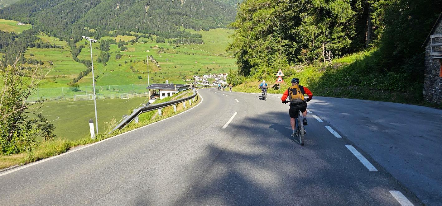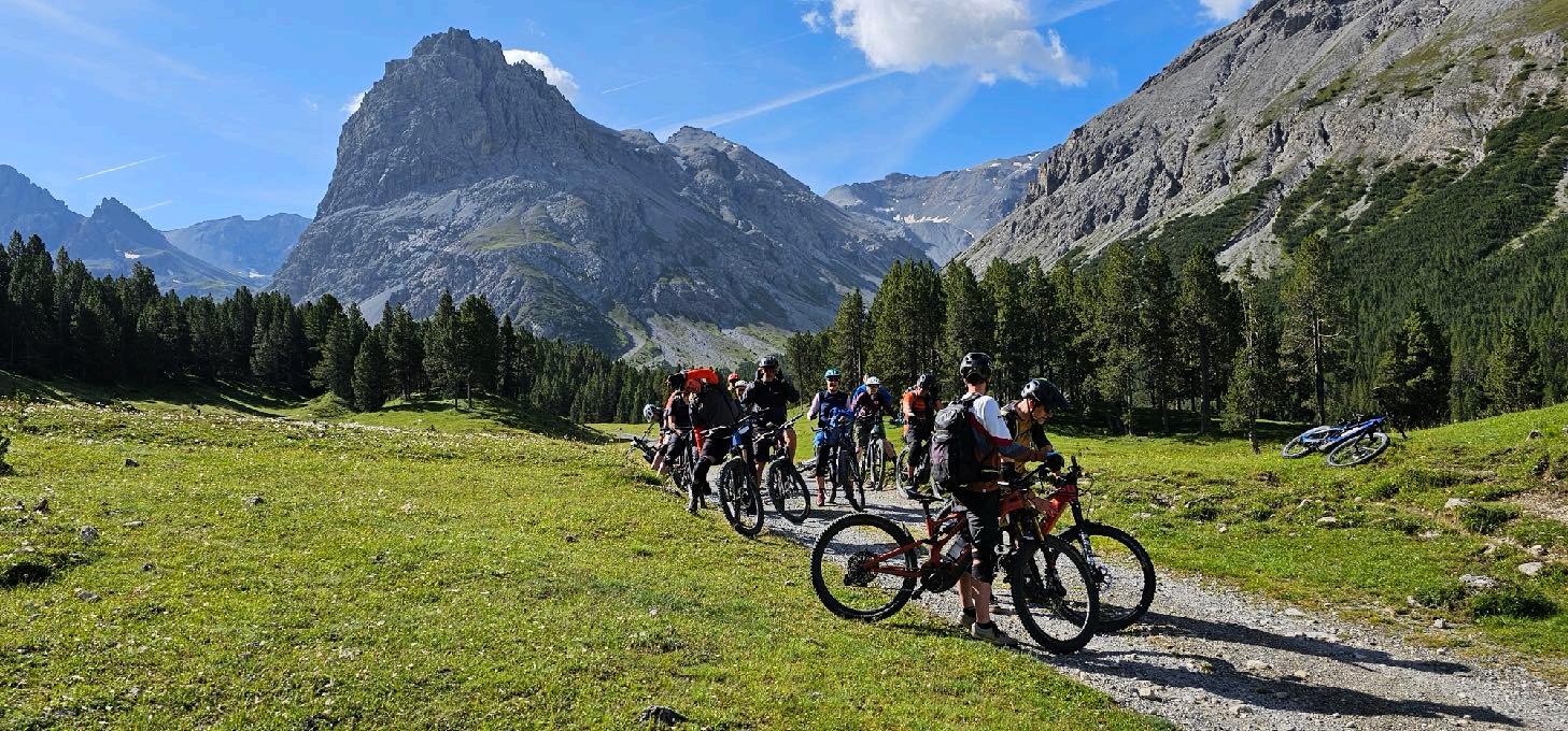 Die ersten 20 Minuten über Asphalt zur Norbertshöhe. Von hier über Schotterwege bis zum Einstieg in die Martina-Trails. Es geht teils technisch und knifflig hinunter ins Unterengadin. Bis Scuol auf Forst- und Radwegen in moderatem Tempo immer leicht bergan. Ab Scuol nehmen die Prozentzahlen zu und es geht nun steiler bergan bis S-charl. Es geht weiter bergauf auf viel Schotter und toller Landschaft bis zur Passhöhe. Auch diese Strapazen werden belohnt. Es folgt ein super Trail bis nach Sta. Maria. Wir rollen über Trails und Forststraßen stetig bergab. Sind die ersten Meter teils noch steil und voller technischer Herausforderungen, wird der Pfad später immer mehr zum Flow. Kurz vor Sta. Maria dann das Grande Finale. Hier haben die Locals wirklich ganze Arbeit geleistet. Einige der Flowtrails wurden extra für Mountainbiker gebaut oder hergerichtet.