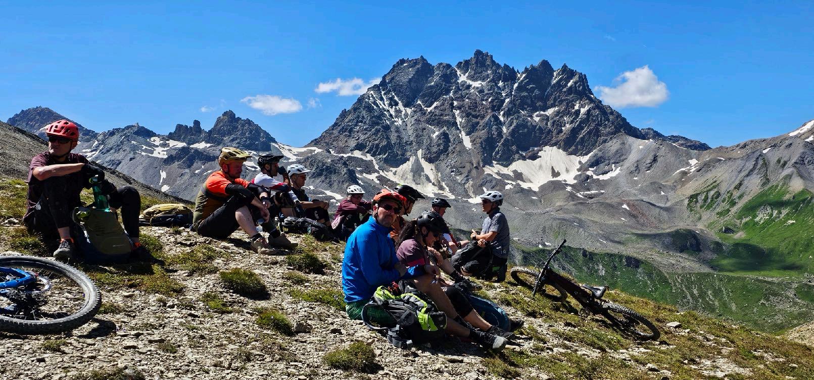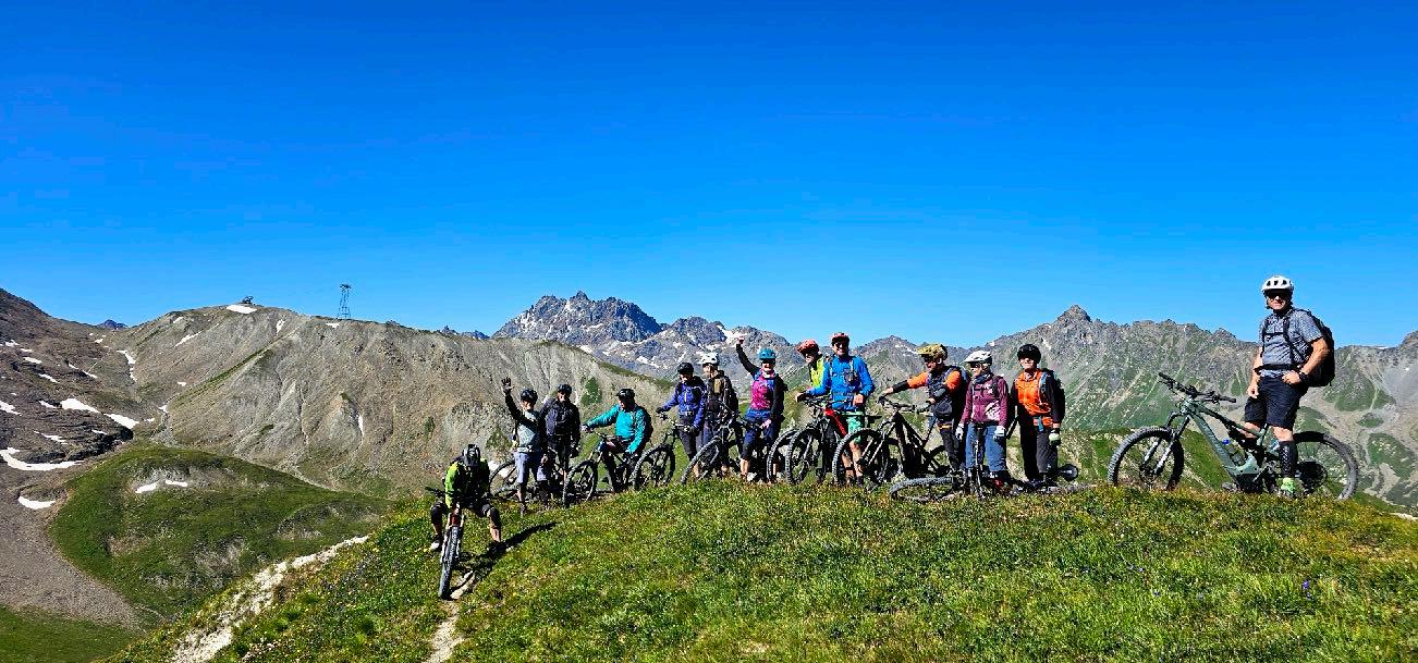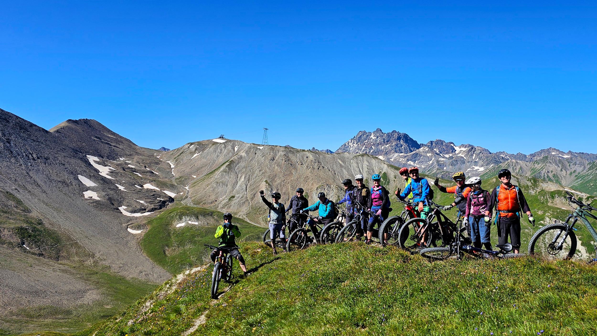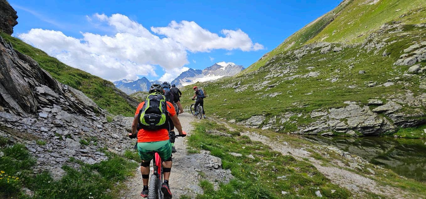 Diesen Tag wird keiner so schnell vergessen. Die Stein- und Trailwüsten des Alpenhauptkammes erwarten uns. Schnell bringt uns die Seilbahn auf 2700 Meter Höhe. Das Idjoch ist unser eigentlicher Start. Die Trails um Zeblasjoch und Fimbapass fordern dann höchste Kraft und Konzentration. Mehr hochalpines Bergpanorama ist kaum möglich. Wir blicken weit hinein in die Samnaun- und Sesvenna-Gruppe. Wir sind dem Alpenhauptkamm ganz nah. Unvergeßliche Blicke werden frei. Nach tollen und anspruchsvollen Trails erreichen wir die Heidelberger Hütte. Wir genießen beste Tiroler Hüttenkost. Danach geht es auch schiebend weiter bergauf. Bei knapp 2800 Metern ist dann erstmal Schluss. Wir atmen tief durch und genießen. Nicht selten liegt hier oben selbst im Sommer Schnee. Das Panorama ist in jedem Fall überwältigend. Über teils knifflige, anstrengende Trails tasten wir uns tief hinunter nach Ramosch. Wer Spitzkehren beherrscht, ist hier klar im Vorteil. Bei der Mittagspause wurden die Kohlenhydratspeicher mit allerlei Leckereien bestens gefüllt. Somit bleibt noch Energie für den Nachmittagsanstieg. Unten im Inntal, überqueren die Grenze zur Schweiz und atmen tief durch für den letzten Anstieg zum Schwarzsee hoch über Nauders. Bevor wir erschöpft, aber begeistert die Annehmlichkeiten des Hotels genießen können, warten noch allerlei Trailschmankel auf uns. So könnte jeder Mountainbiketag aussehen.