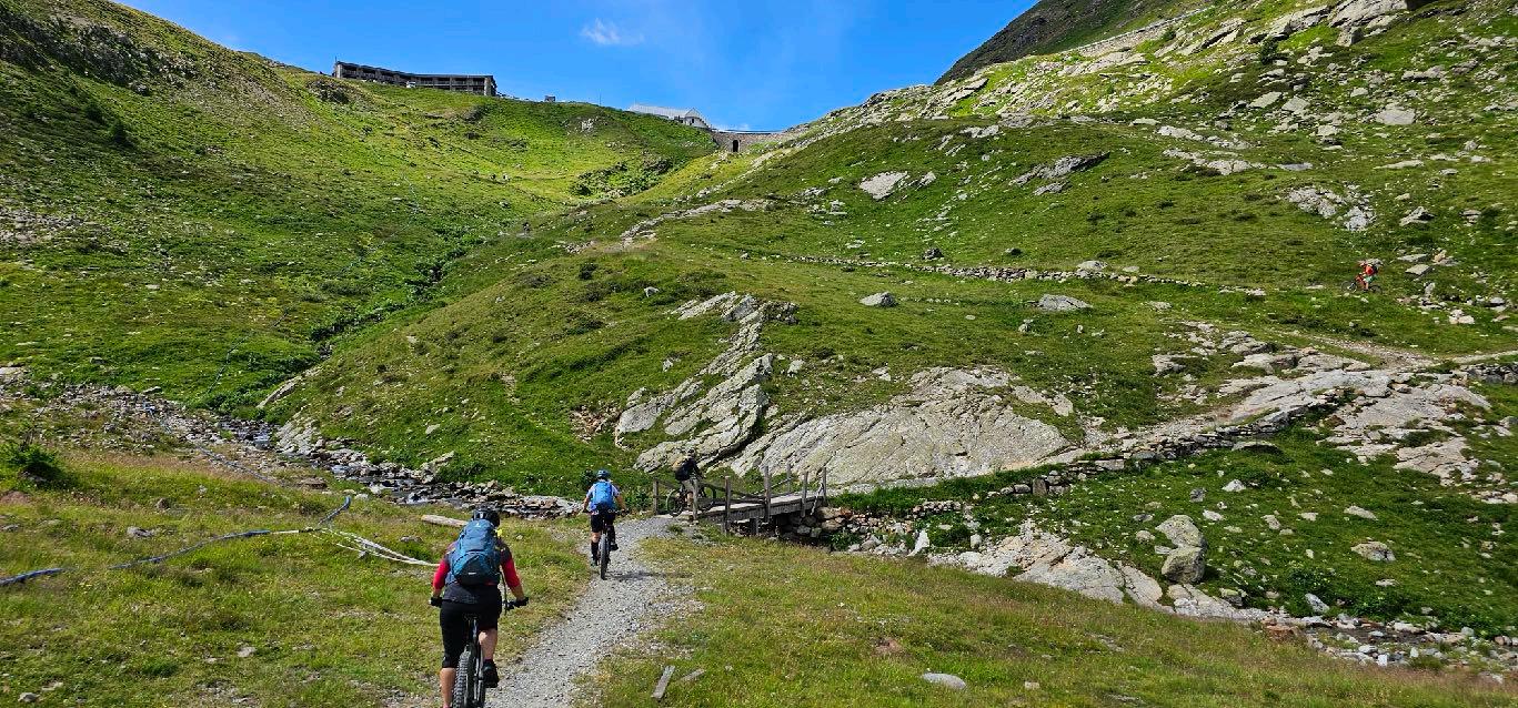 Gute Kondition ist heute gefordert. Die Seilbahn bringt uns nach oben. Trails und hochalpine Strecken auf über 2600 Meter Höhe. Technische Abschnitte auf einem Höhenweg Richtung Heidelberger Hütte. Von der Hütte nochmals sehr steil mit kurzen Schiebepassagen bis zum Fimbapass. Nun auf teils verblockten und ausgesetzten Trail über 1000 Höhenmeter bergab ins Unterengadin. Einige Kilometer gemütliches Rollen auf dem Radweg Richtung Sclamishot. Fast 500 Höhenmeter am Nachmittag auf einem Schotterweg hinauf nach Nauders mit kurzer Tunneldurchfahrt. Je nach Verfassung und Zeit können an der Norbershöhe nochmals flowige aber auch anspruchsvolle Trails nach Nauders eingebaut werden.